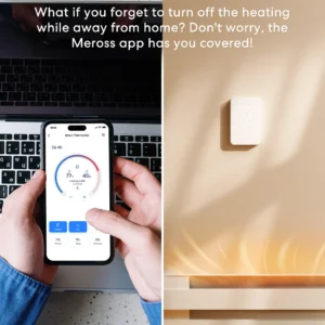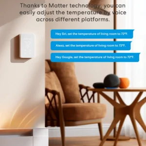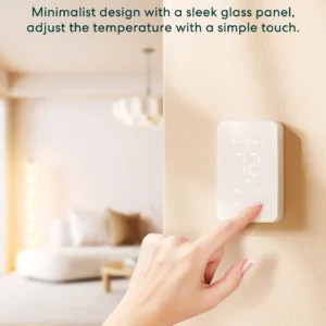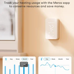 • Easy to Use: Featuring a minimalist design with a sleek glass panel, adjust the temperature with a simple touch or control it remotely via the Meross app anytime, anywhere. Thanks to Matter technology, the smart thermostat also Works with Apple Home, Siri, Alexa, Google Assistant, and SmartThings.